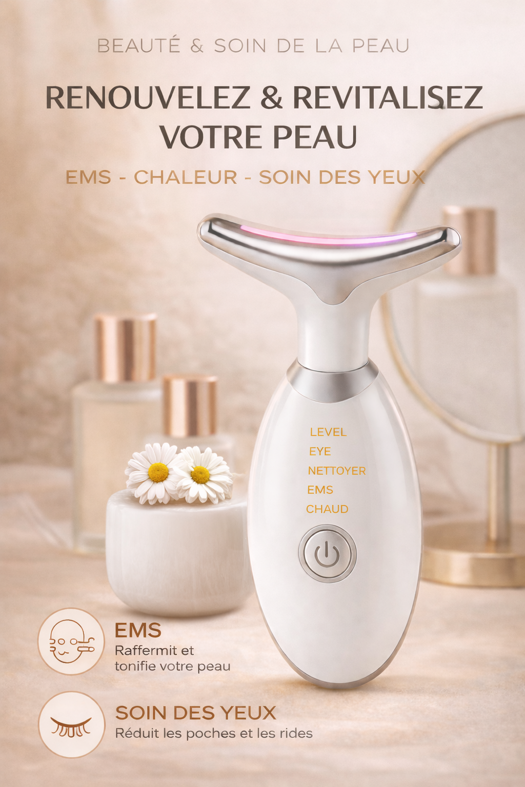 Tovarie Skin est un appareil de massage facial innovant conçu pour stimuler la peau et détendre les traits du visage. Il aide à améliorer l’éclat, la fermeté et l’absorption des soins, même sur les peaux sensibles. Un rituel beauté simple et efficace pour une peau visiblement plus lisse et revitalisée.